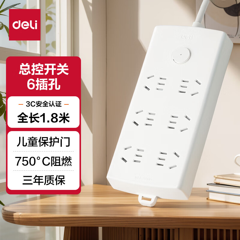 商品名称:得力(deli)珠白系列新国标安全插座/插排/插线板/接线板/排插/拖线板延长线 总控开关 保护门6位1.8米 LX123