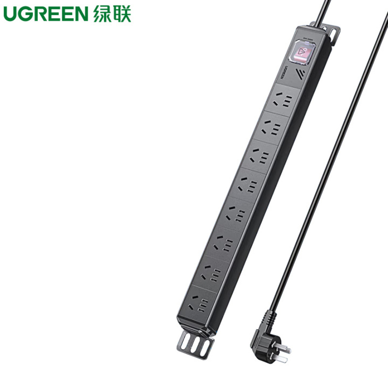 绿联 80936 PDU机柜插座 8位10A防雷插排新国标机房接线板 总控线长1.8米全长2.25米