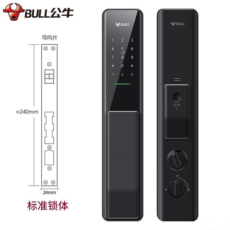 公牛(BULL) 智能标准锁体家用防盗门指纹锁密码锁C级锁芯 X70 陨石黑