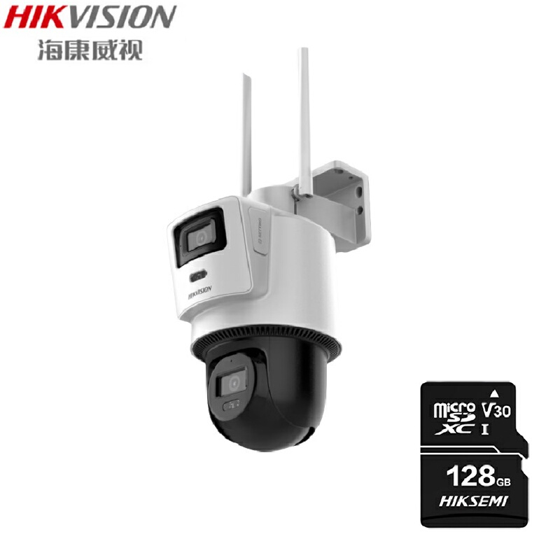 海康威视(HIKVISION)Q2S8DM 摄像头内置无限流量4G免流量双摄800万家用监控器夜视全景室外户外带128G卡