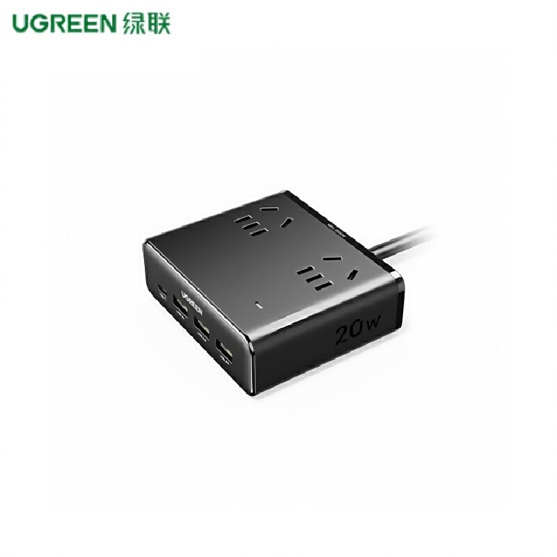 绿联(UGREEN)S620 S6魔盒氮化镓20W快充插排USB插座便携插线板桌面充电站迷你多功能适用苹果15华为小米手机平板iPad