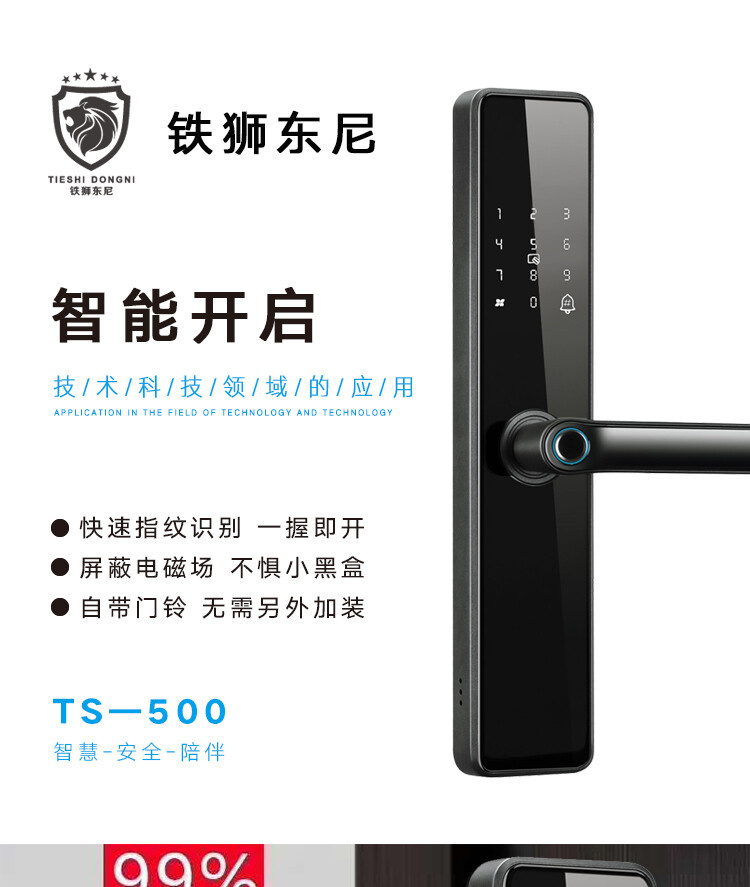 商品名称:铁狮东尼 智能密码锁自带门铃一握即开家用防盗门电子门锁智能门锁500B 黑色 铁狮一握即开