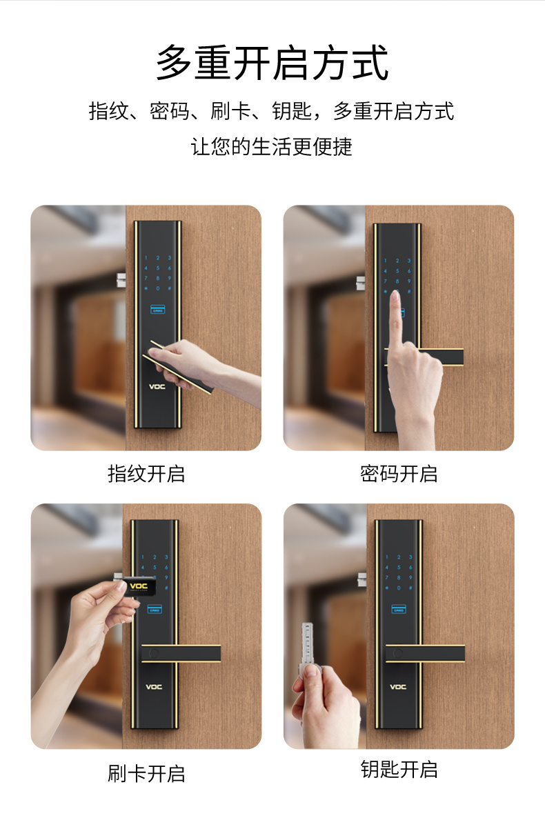商品名称:VOC 指纹锁家用防盗门锁木门大门智能锁磁卡电子锁通用型密码锁 X9 琥珀金