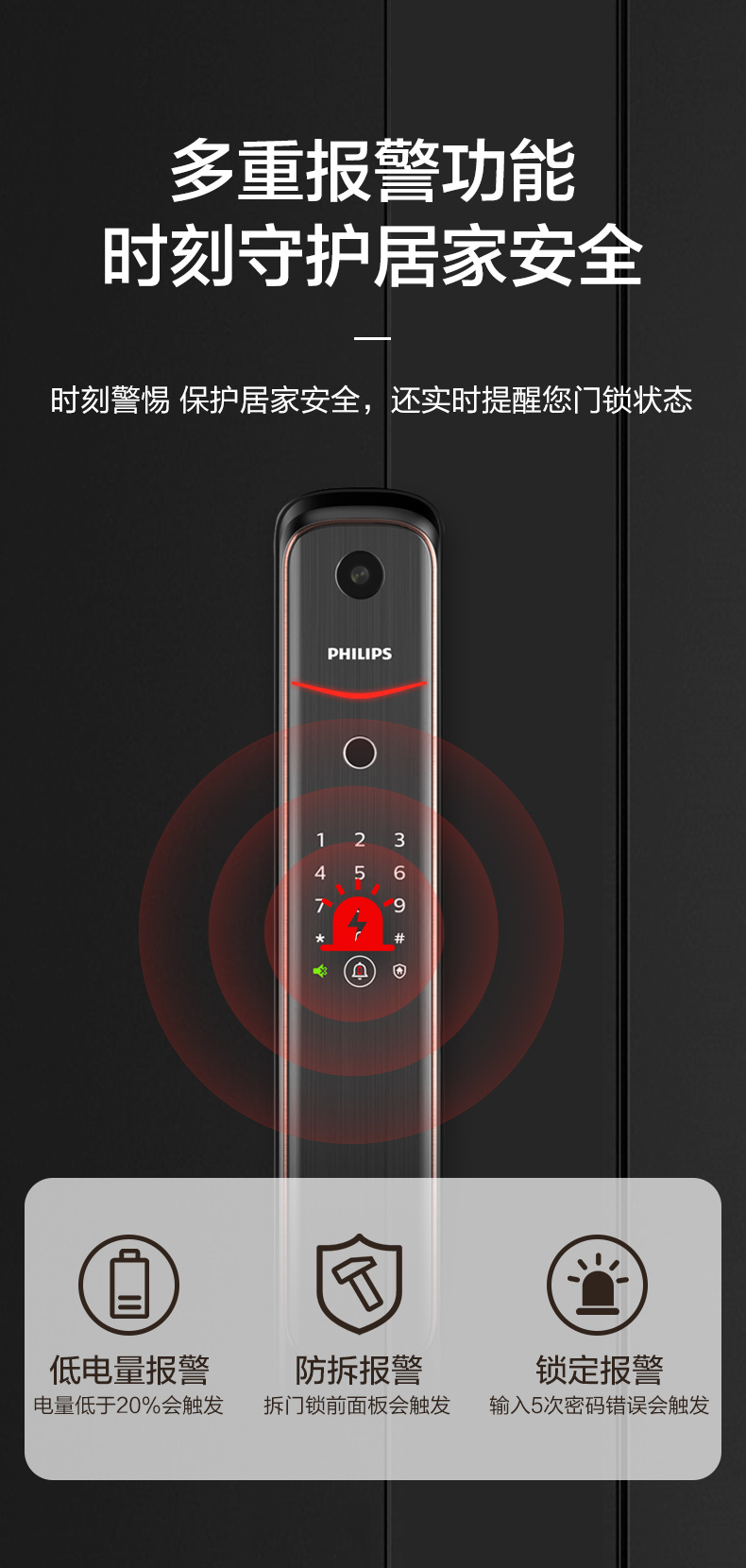 飞利浦(PHILIPS)DDL702 人脸识别锁智能指纹锁