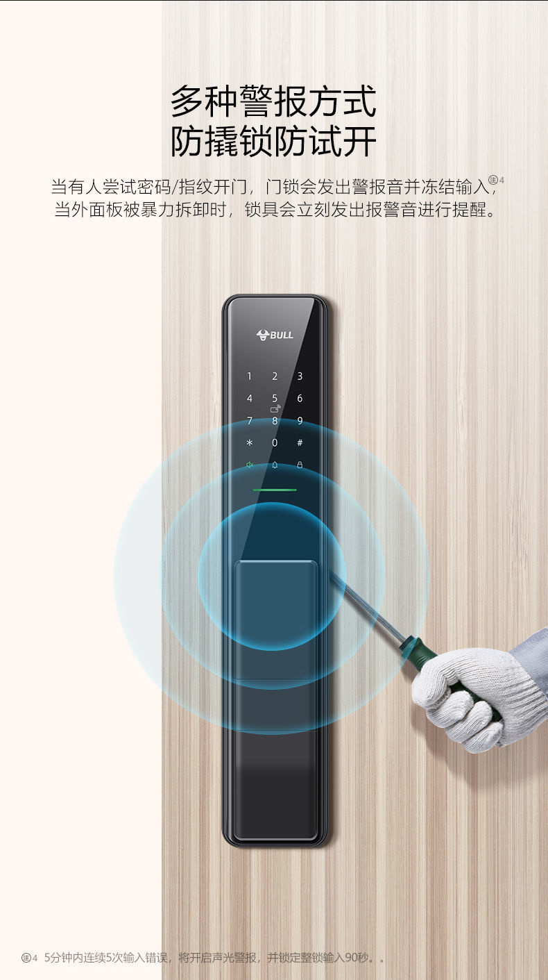 公牛(BULL) 智能标准锁体家用防盗门指纹锁密码锁C级锁芯 X70 陨石黑