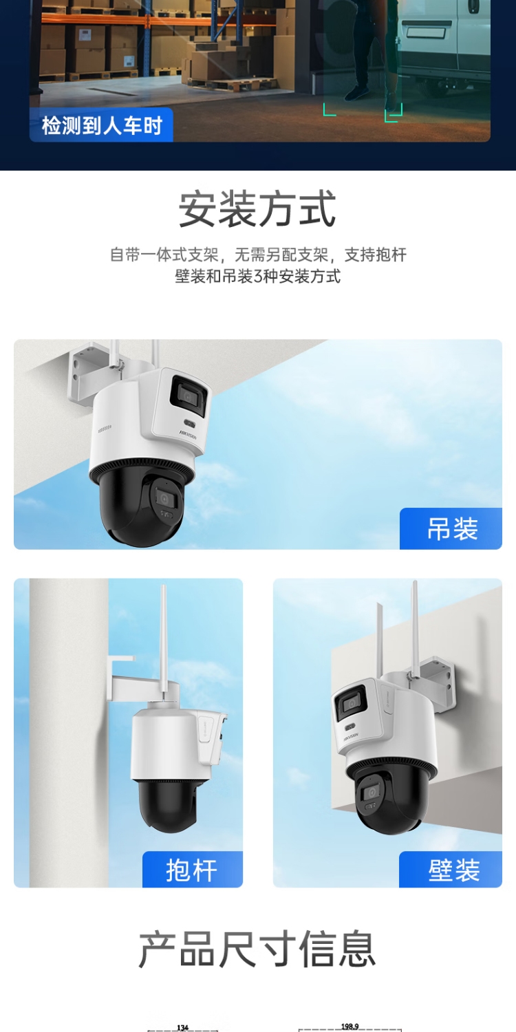 商品名称:海康威视(HIKVISION)Q2S8DM 摄像头内置无限流量4G免流量双摄800万家用监控器夜视全景室外户外带64G卡