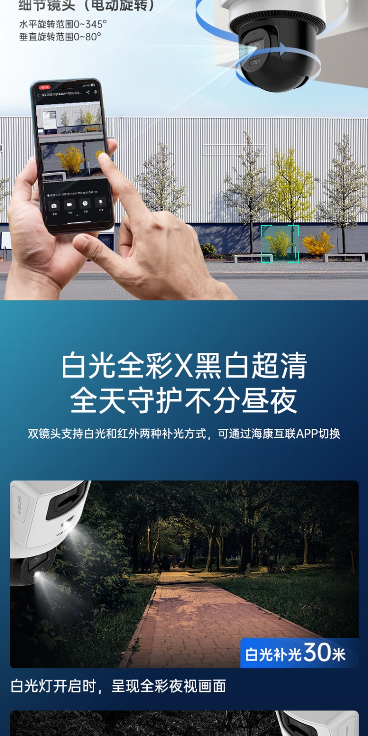 海康威视(HIKVISION)Q2S8DM 摄像头内置无限流量4G免流量双摄800万家用监控器夜视全景室外户外带64G卡