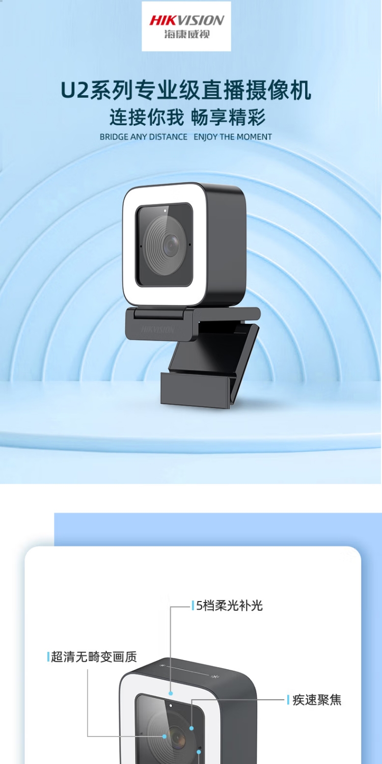 海康威视(HIKVISION)DS-U28 电脑摄像头4K超高清USB免驱广角柔光内置麦克风自动对焦网络直播笔记本台式机
