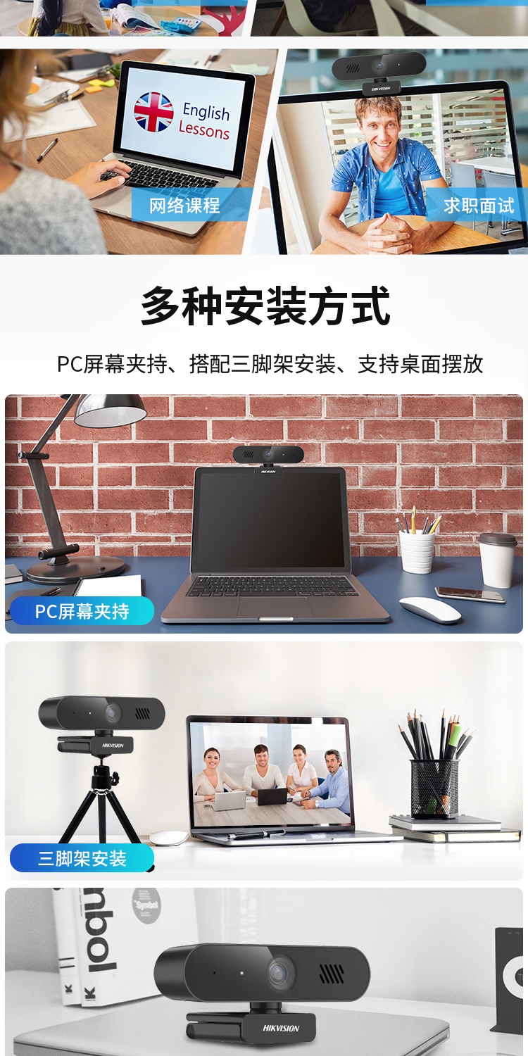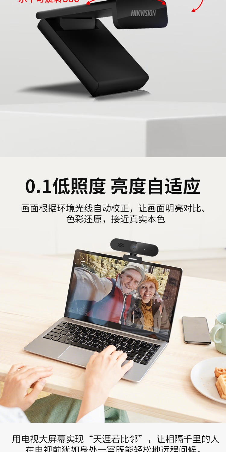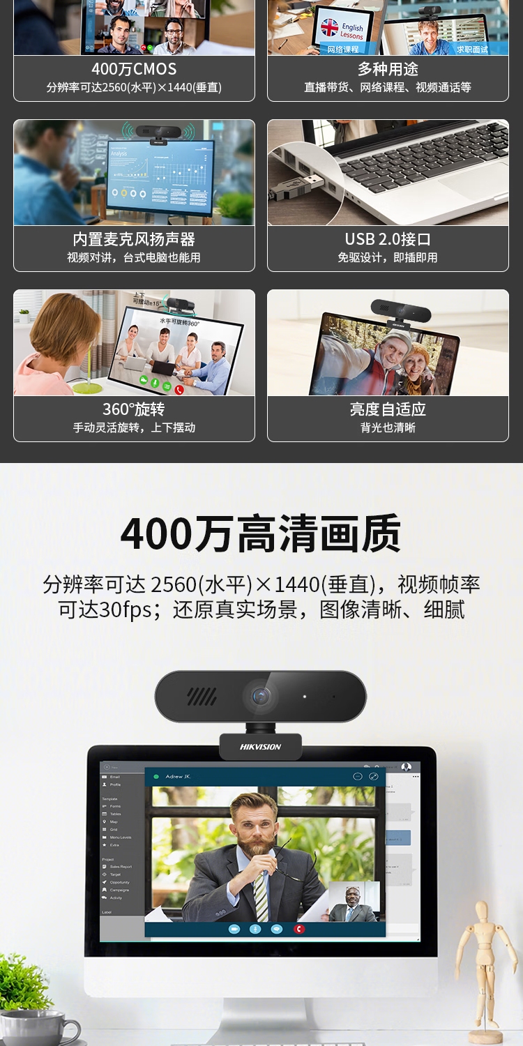 海康威视(HIKVISION)E14S 电脑摄像头直播2K高清带麦克风扬声器USB外接笔记本电脑台式机网课视频会议直播带货