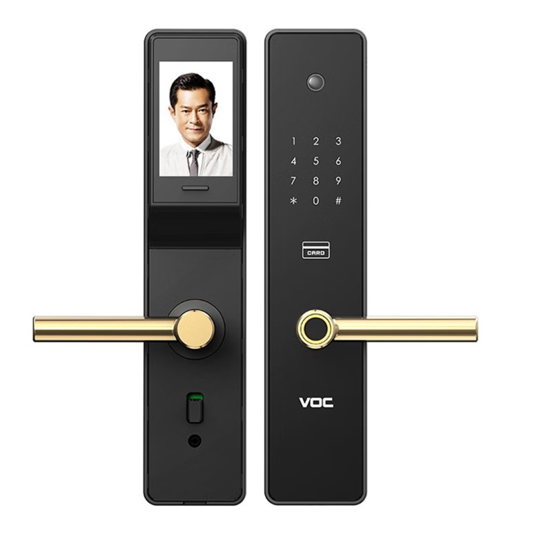 VOC 全自动指纹锁3D人脸识别智能门锁 家用防盗门木门密码锁电子锁T8 FACE 赤金