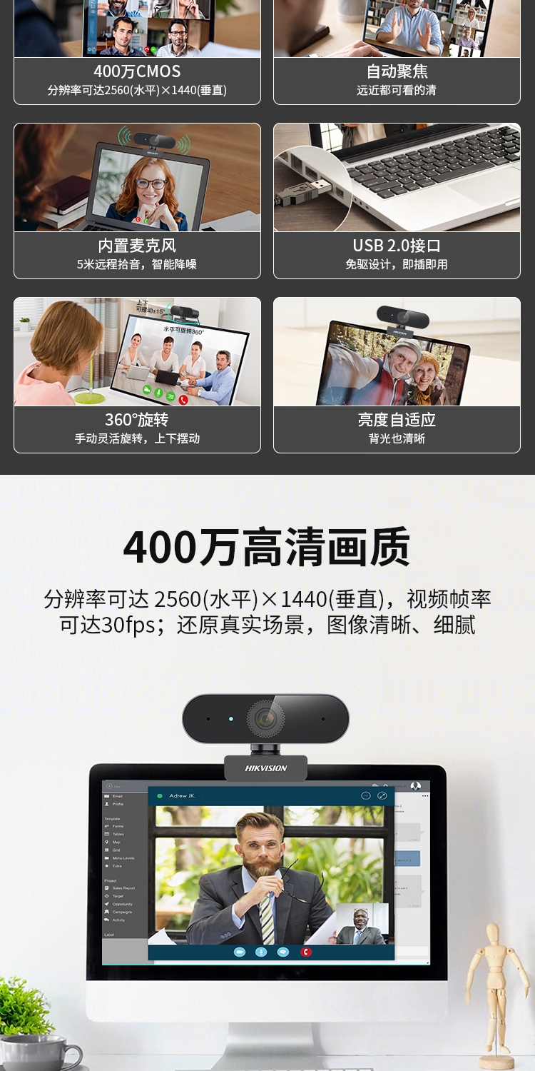 商品名称:海康威视(HIKVISION)E14a 电脑摄像头2K高清直播带麦克风自动对焦台式机笔记本电脑外接家用视频会议办公带货
