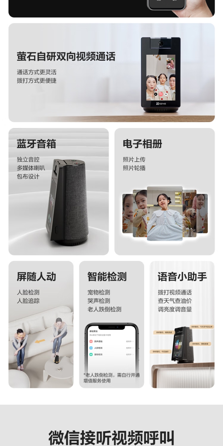 萤石(EZVIZ)S10视频通话摄像机 带屏监控 400万像素 双向视频通话 双云台设计 蓝牙音箱 4英寸高清可触控屏