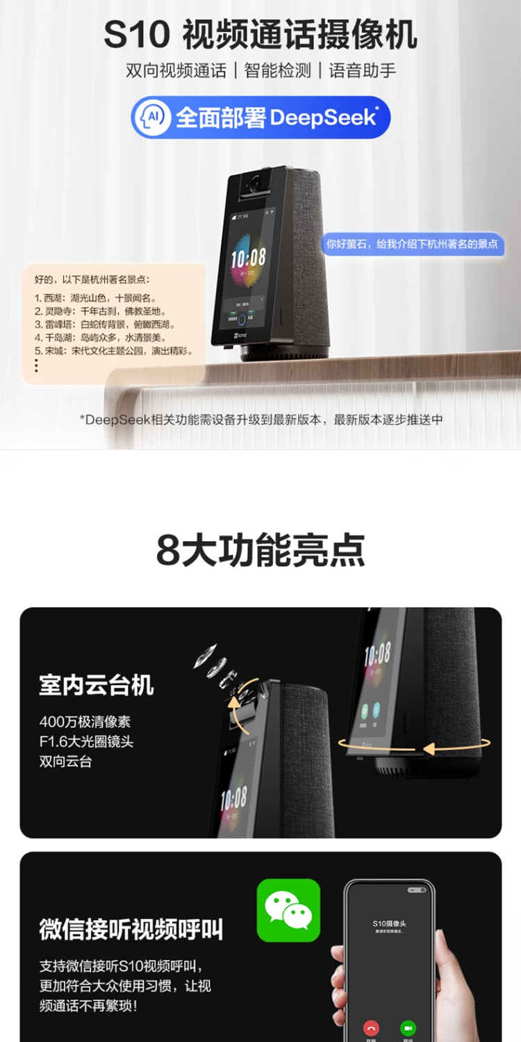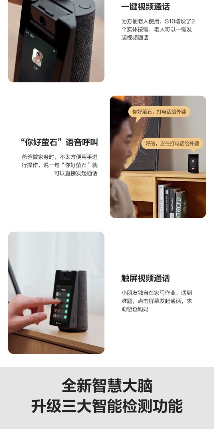 商品名称:萤石(EZVIZ)S10视频通话摄像机 带屏监控 400万像素 双向视频通话 双云台设计 蓝牙音箱 4英寸高清可触控屏