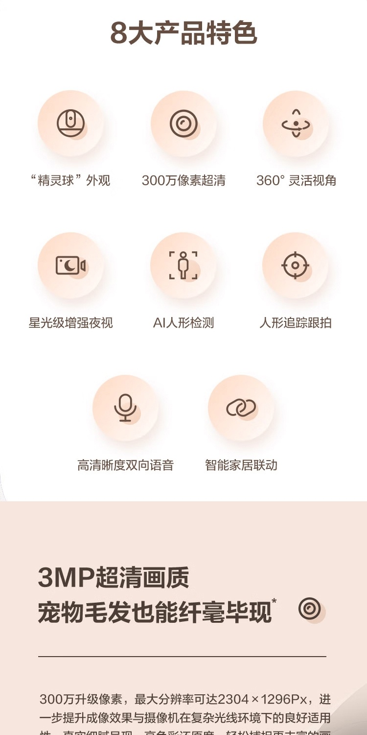 商品名称:萤石(EZVIZ) C6c 2K星光版 300万超清 室内智能无线监控器家用摄像头 双向通话 手机远程 AI人形检测