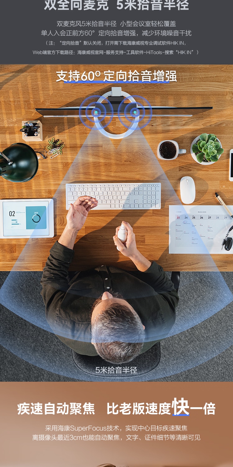 海康威视(HIKVISION)U62 Pro 电脑直播摄像头高清带麦克风摄像机广角聚焦人脸跟踪USB视频会议家用直播带货