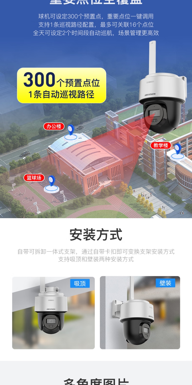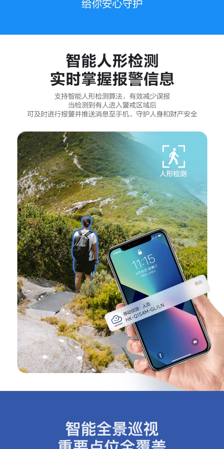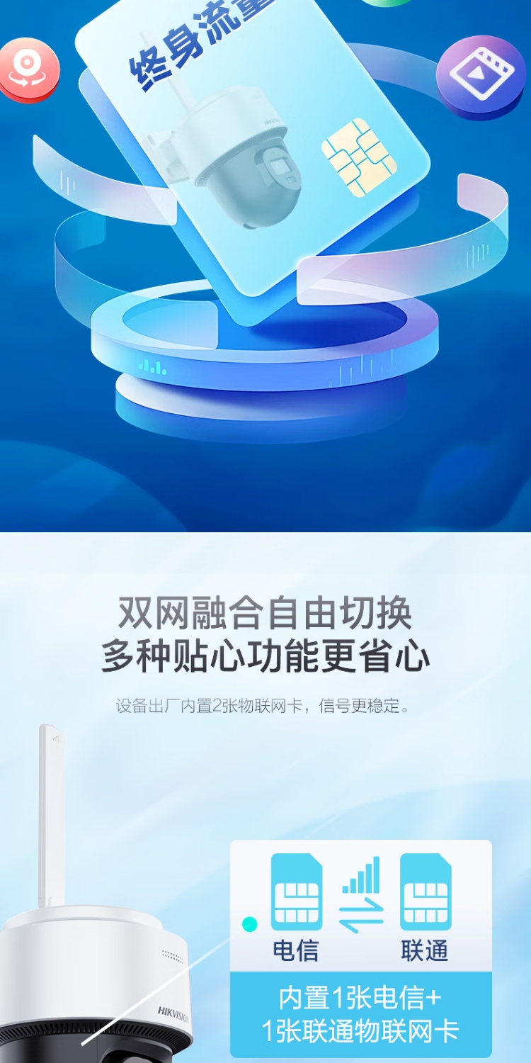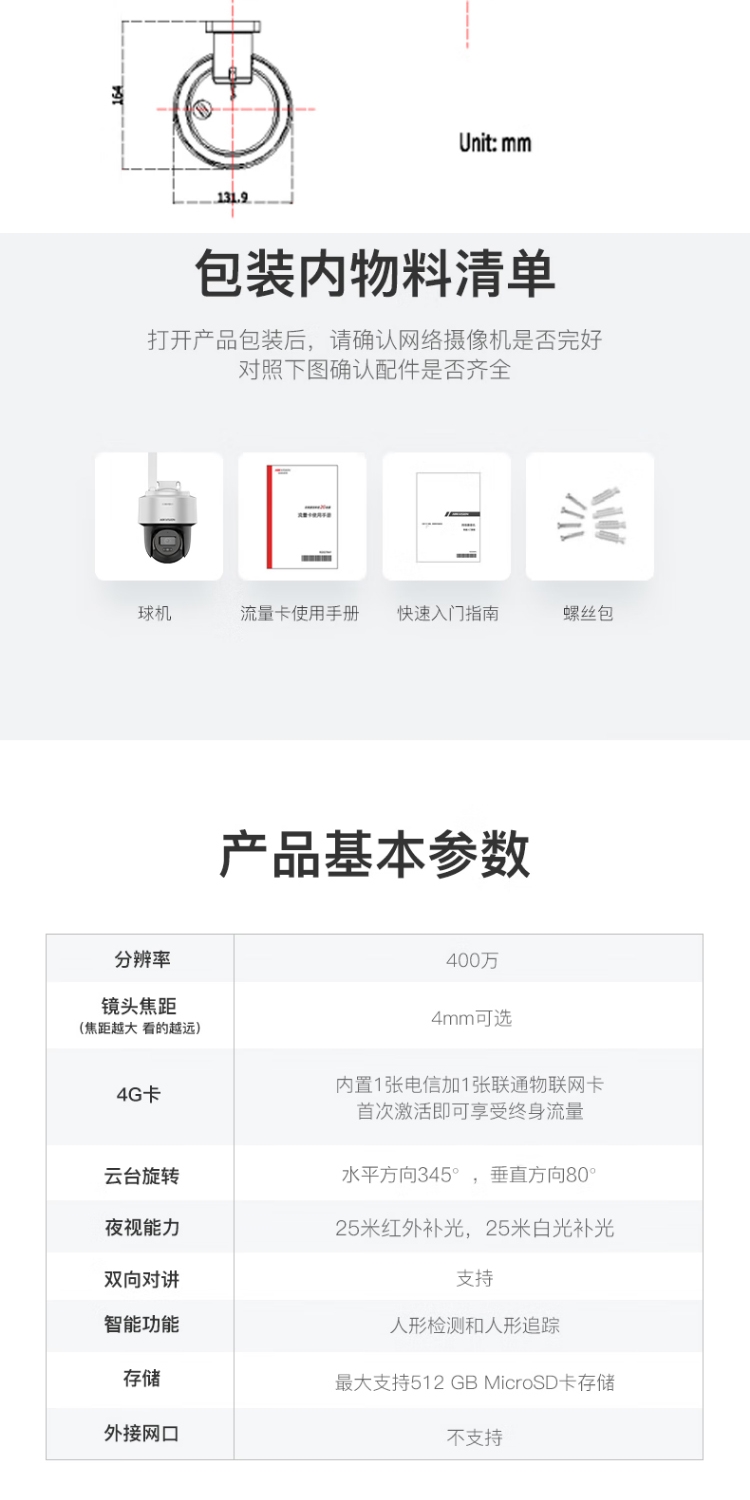 商品名称:海康威视(HIKVISION)Q1S4M 摄像头内置无限流量4G免流量400万家用监控器360度夜视全景室外户外带128G卡