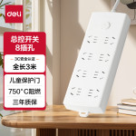 得力(deli)珠白系列新国标安全插座/插排/插线板/接线板/排插/拖线板延长线 总控开关 保护门8位3米 LX126