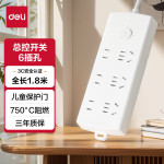 得力(deli)珠白系列新国标安全插座/插排/插线板/接线板/排插/拖线板延长线 总控开关 保护门6位1.8米 LX123