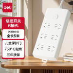 得力(deli)珠白系列新国标安全插座/插排/插线板/接线板/排插/拖线板延长线 总控开关 保护门6位5米 LX124