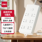 得力(deli)珠白系列新国标安全插座/插排/插线板/接线板/排插/拖线板延长线 总控开关 保护门6位1.8米 LX124