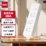 得力(deli)珠白系列新国标安全插座/插排/插线板/接线板/排插/拖线板延长线 总控开关 保护门3位1.8米 LX122