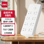 得力(deli)珠白系列新国标安全插座/插排/插线板/接线板/排插/拖线板延长线 总控开关 保护门8位1.8米 LX126